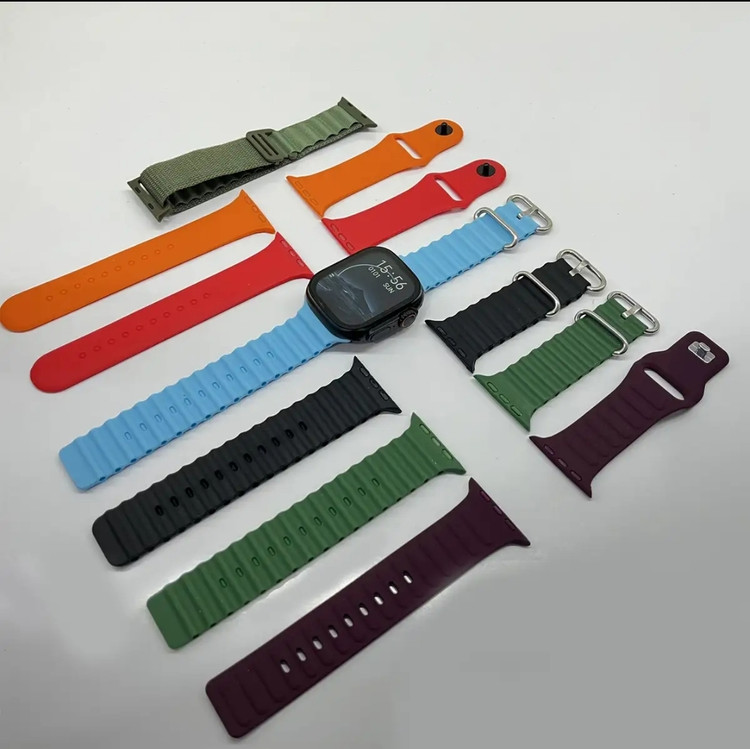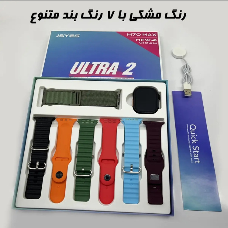 قسمت پشتی این ساعت هوشمند نیز محل قرار گیری سنسورهای سلامتی است که اطلاعات سلامتی شما را بررسی می کند. ساعت هوشمند مدل M70 Max در بسته بندی خود داری 6 مدل بند سیلیکونی و یک بند پارچه ای می باشد، البته که شما می توانید از بندها و گلس های اصلی اپل واچ سایز 49 نیز برای آن استفاده نمایید.